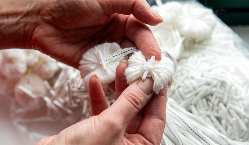 Tufting is an ancient technique used in everyday upholstery and bedding manufacture. Hand tufting mattresses and upholstery is a labour-intensive process and can create a bottleneck within the production process.
